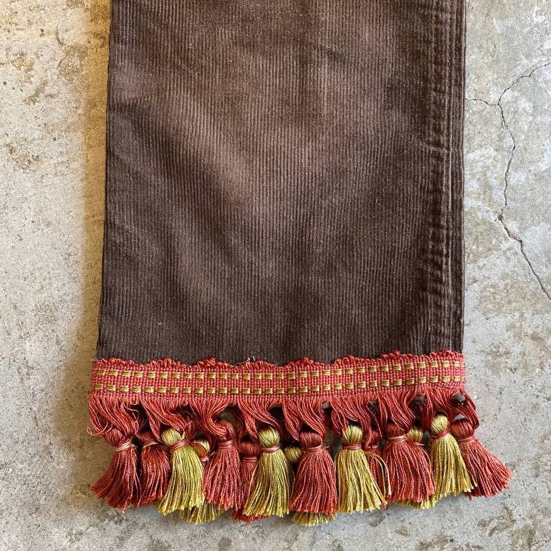 | SIZE | W28(ウエスト:約72cm/股上:約28cm/レングス:約64cm(フリンジ含む)/裾幅:約18cm/わたり幅:約25cm) |