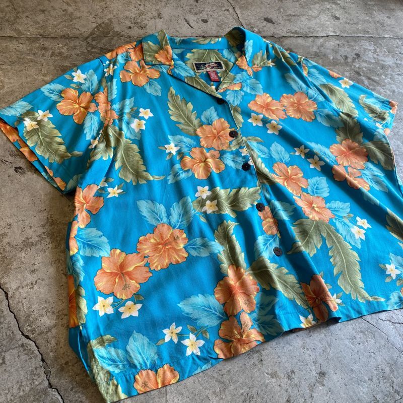 FLORAL PATTERN ALOHA RAYON COLOR SHIRTS / Ladies L