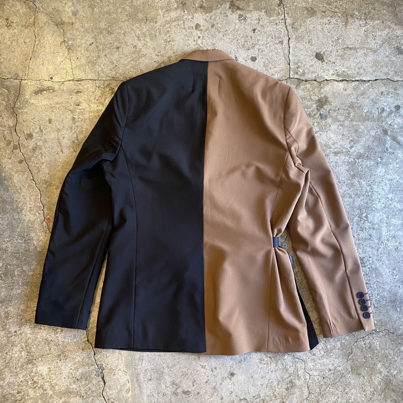 デザイナーのインスピレーションにより解体・再構築された"WEIRD" FUTURE WRAP 2TONE TAYLOR JACKET / OS