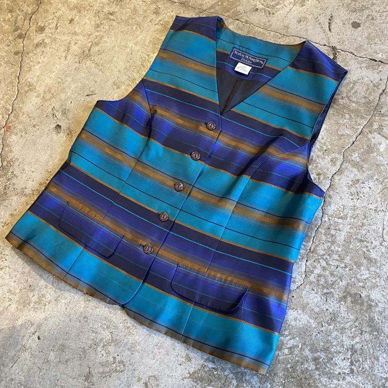 BORDER COLOR DESIGN VEST / Ladies M(10P) / MADE IN USA