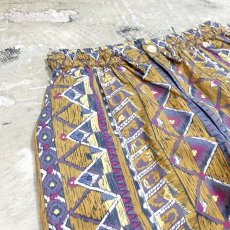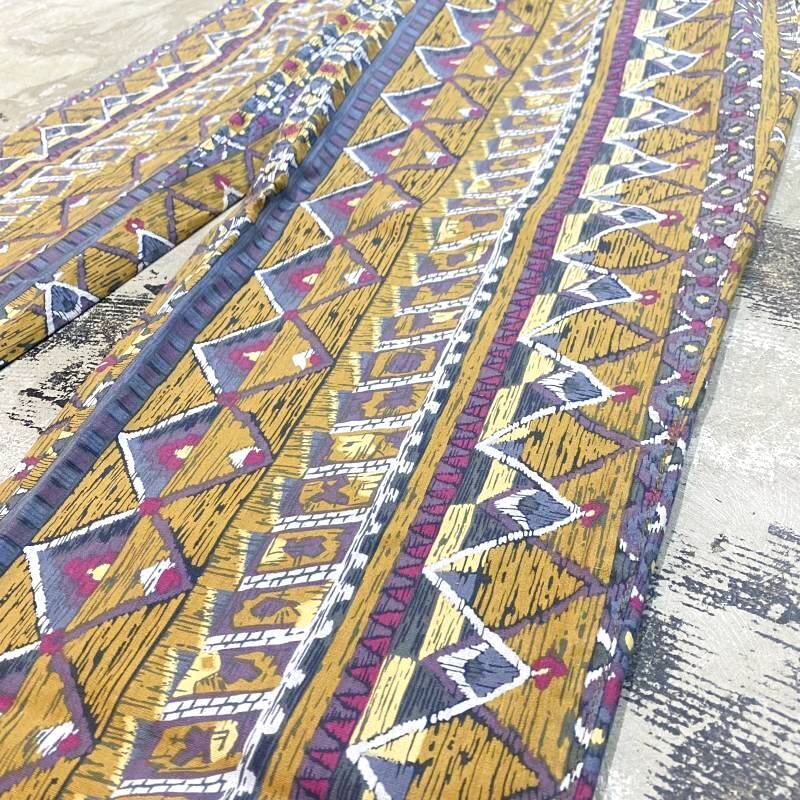 ネイティヴ調の柄がストライプ状に施された、デザインパンツ。