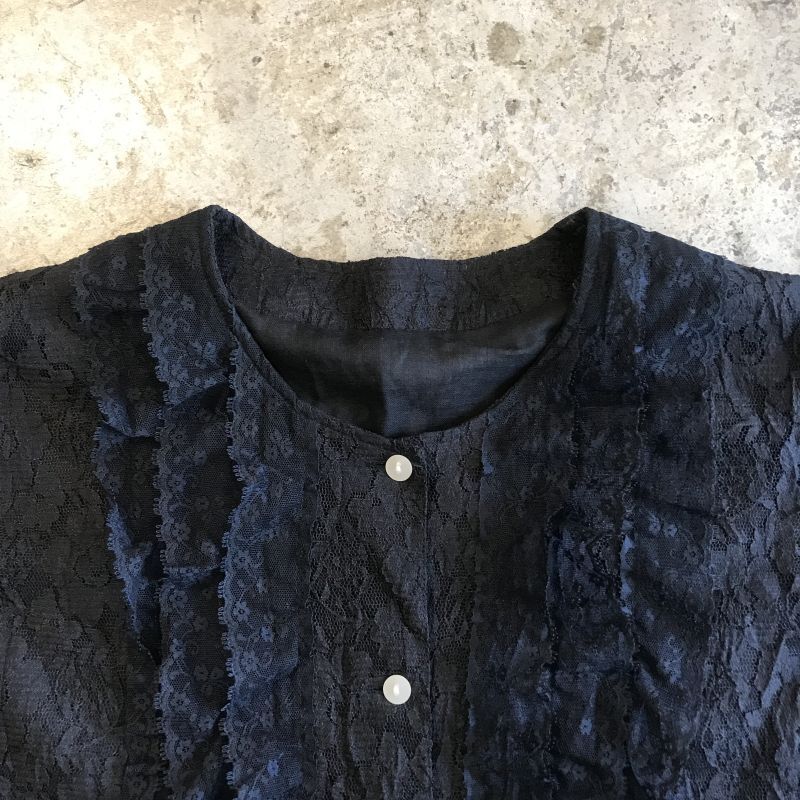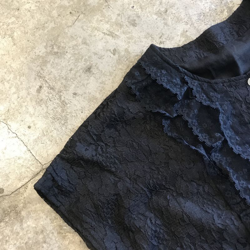 LACE PATTERN FRILL DESIGN S/S BLOUSE / Ladies L