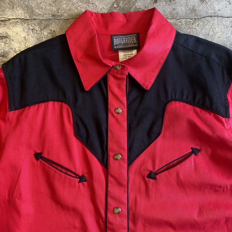 レッドカラーボディにさりげないポイント刺繍を施した、デザインウエスタンシャツ。