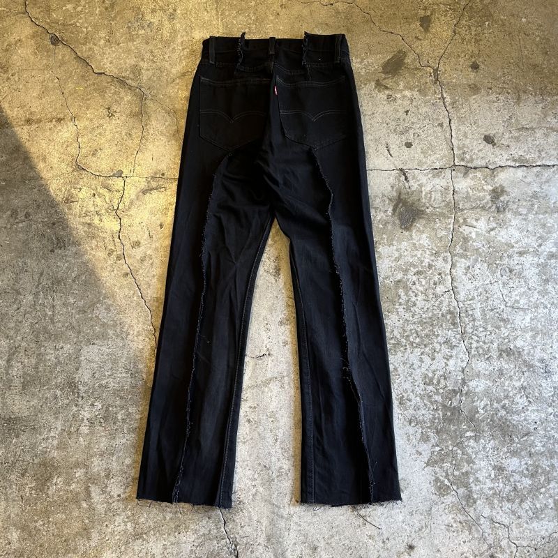 USEDのデニムを解体・再構築し、新たなシルエットとデザインを生み出したFLARE CUT DENIM PANTS。