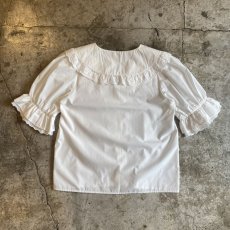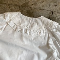 WHITE COLOR FRILL DESIGN COLLAR COTTON SHIRT / Ladies M