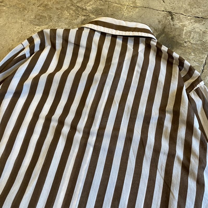BROWN COLOR STRIPE PATTERN DESIGN L/S SHIRT / Ladies M(P)