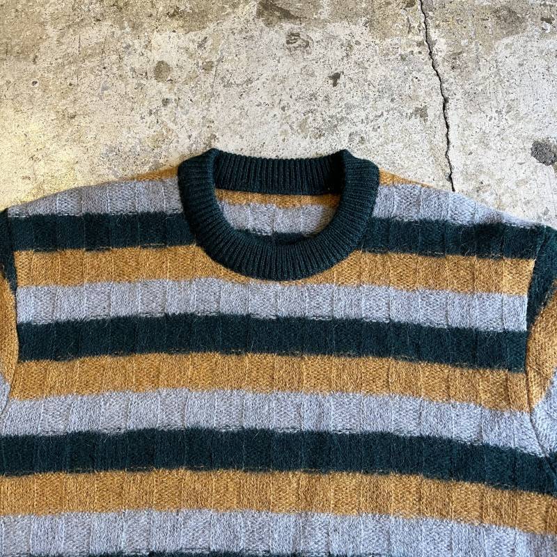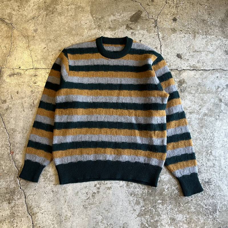 THREE COLOR BORDER PATTERN DESIGN KNIT SWEATER / Ladies M