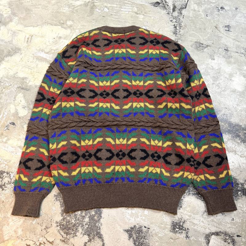 NATIVE BORDER PATTERN KNIT SWEATER / Mens M