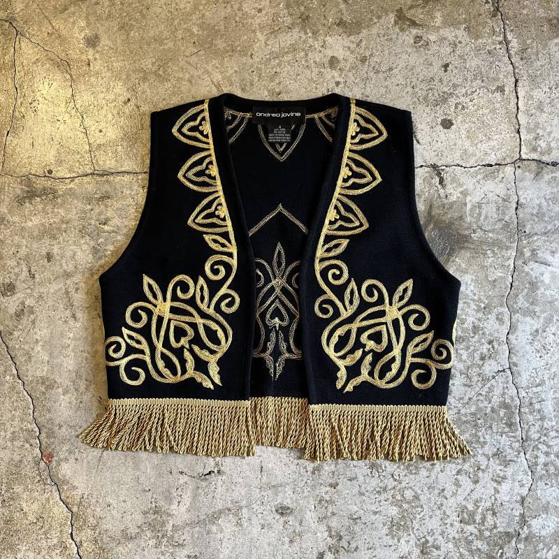 ART EMBROIDERY PATTERN FRINGE DESIGN VEST / Ladies S