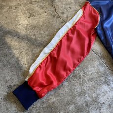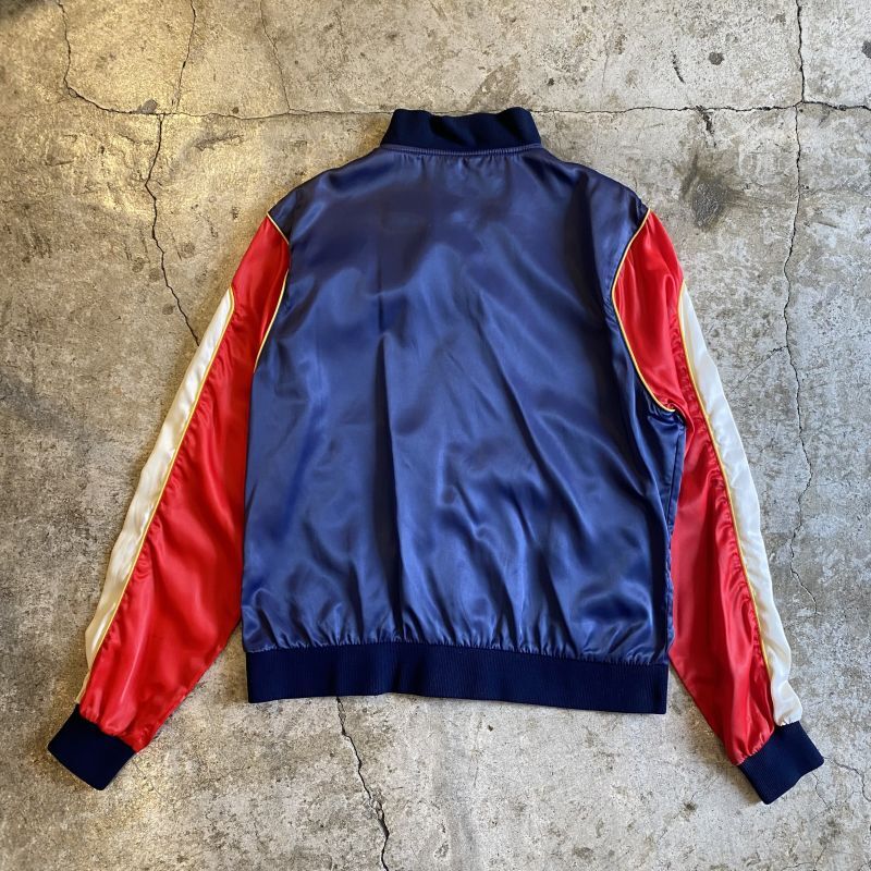 ブルーとホワイト、レッドの3色の配色が目を惹くデザインジャケット。