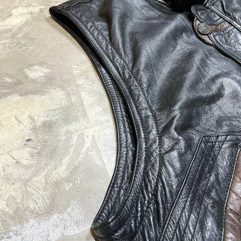 80~90's COLOR SWITCHED LEATHER ZIP UP VEST / Mens L