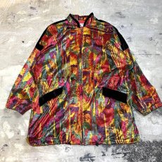ALL OVER PATTERN ZIP UP VELOUR JACKET / Mens L