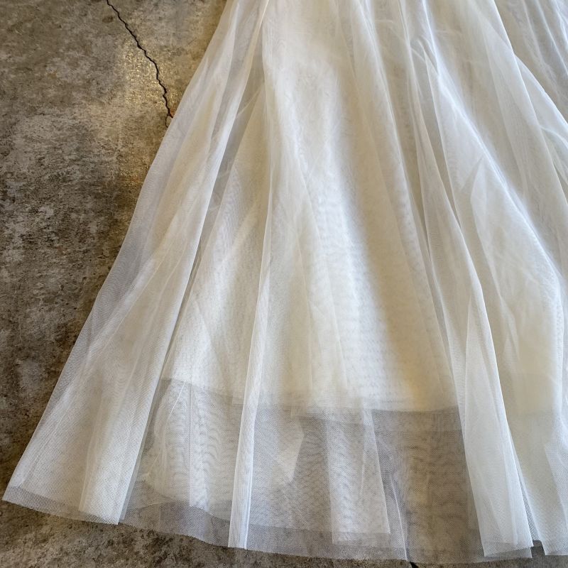 WHITE COLOR FLARE DESIGN TULLE SHEER LONG SKIRT / W23~W34