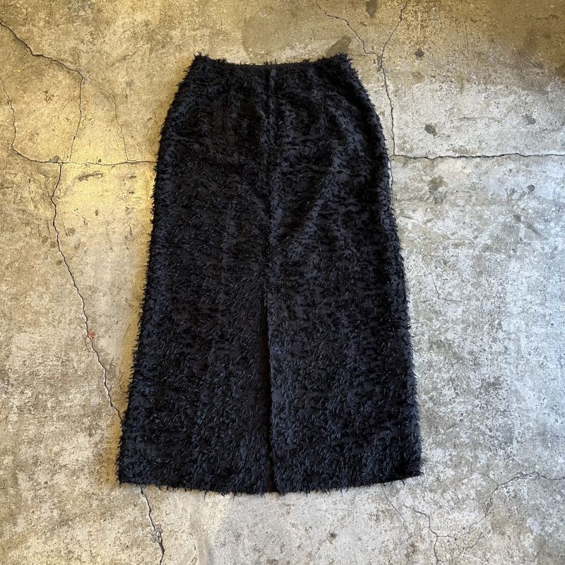 BLACK COLOR SHORT FRINGE DESIGN SHEER LONG SKIRT / W26