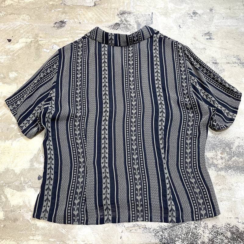MULTI STRIPE PATTERN OPEN COLLAR S/S SHIRT / Mens M