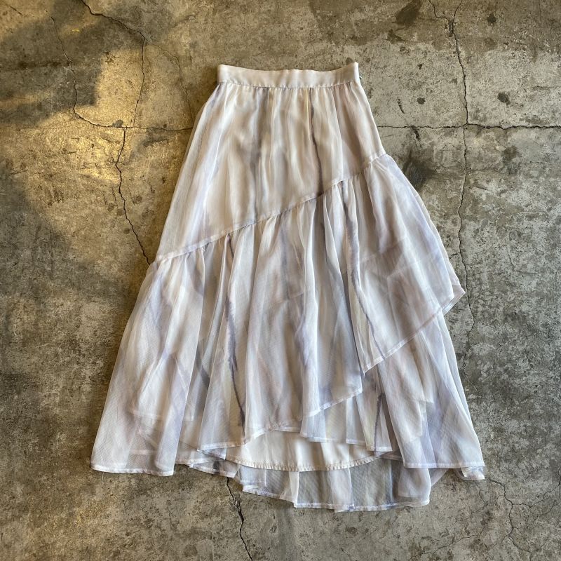 PALE TONE TIE DYE PATTERN ASYMMETRY TIERED SKIRT / W25~W26
