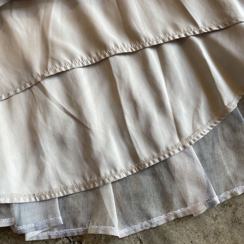 アシンメトリーのティアードシルエットが大人な佇まい。