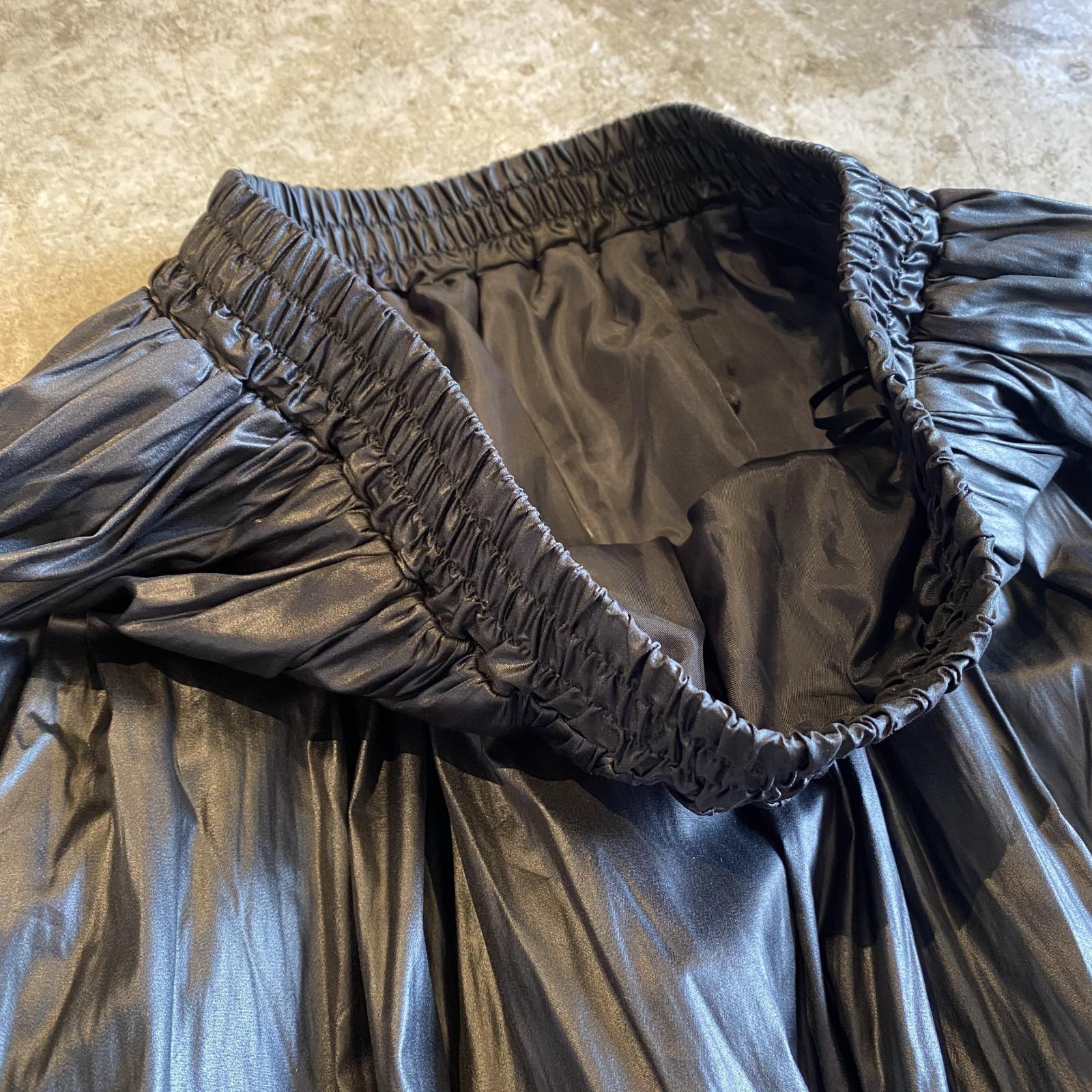 SHINY BLACK COLOR DESIGN TIERED VOLUME SKIRT / W26~W35