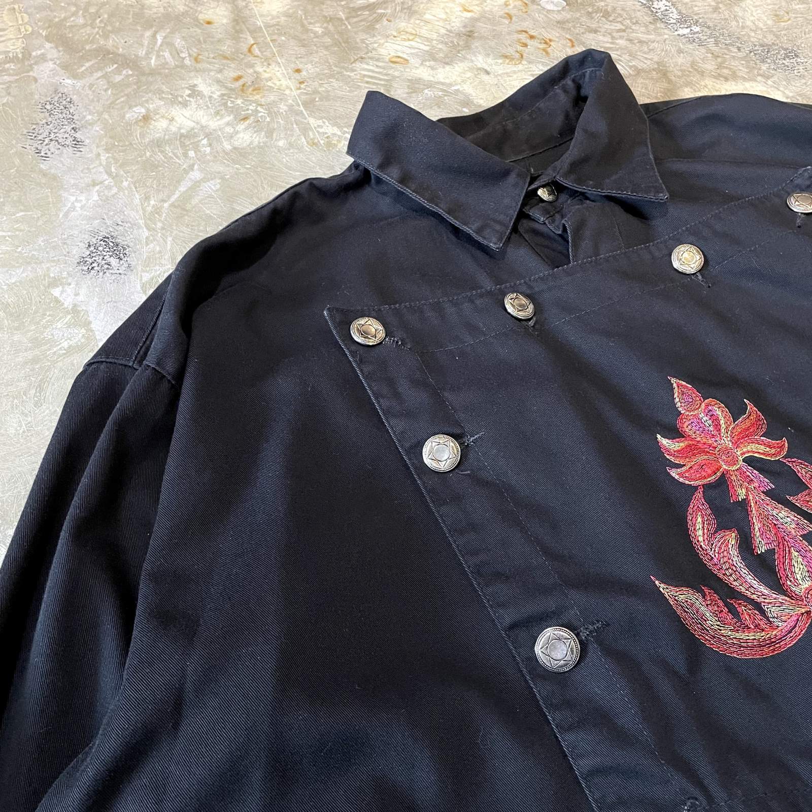 BOTANICAL GRAPHIC EMBROIDERY HALF BUTTON L/S SHIRT / Mens XL