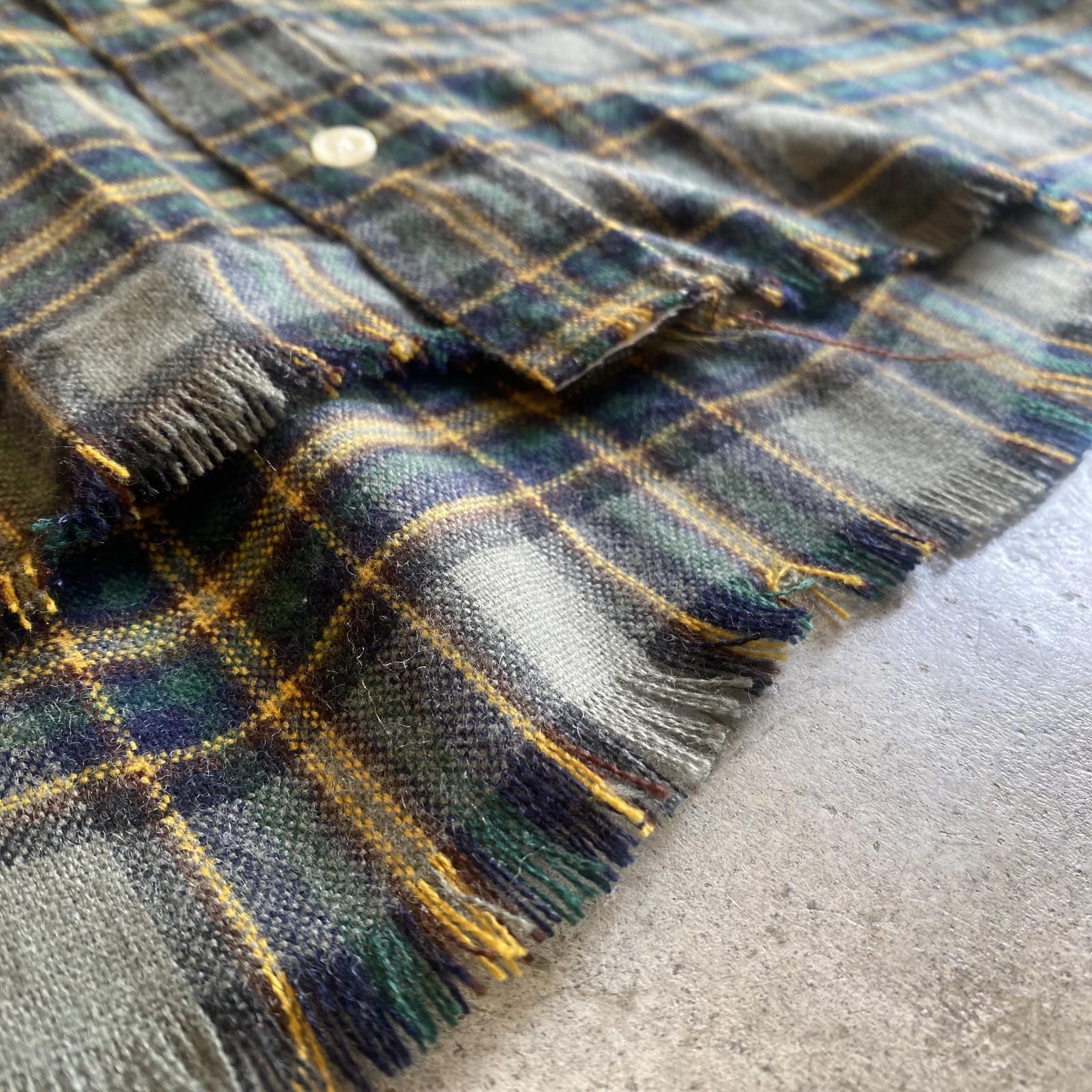 【POLO】CUT OFF DESIGN STAND COLLAR CHECK PATTERN SHIRT / Ladies L