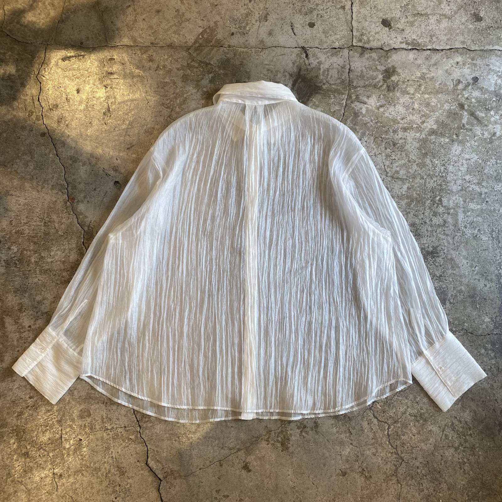 WHITE COLOR DESIGN SHEER L/S SHIRT / Ladies L