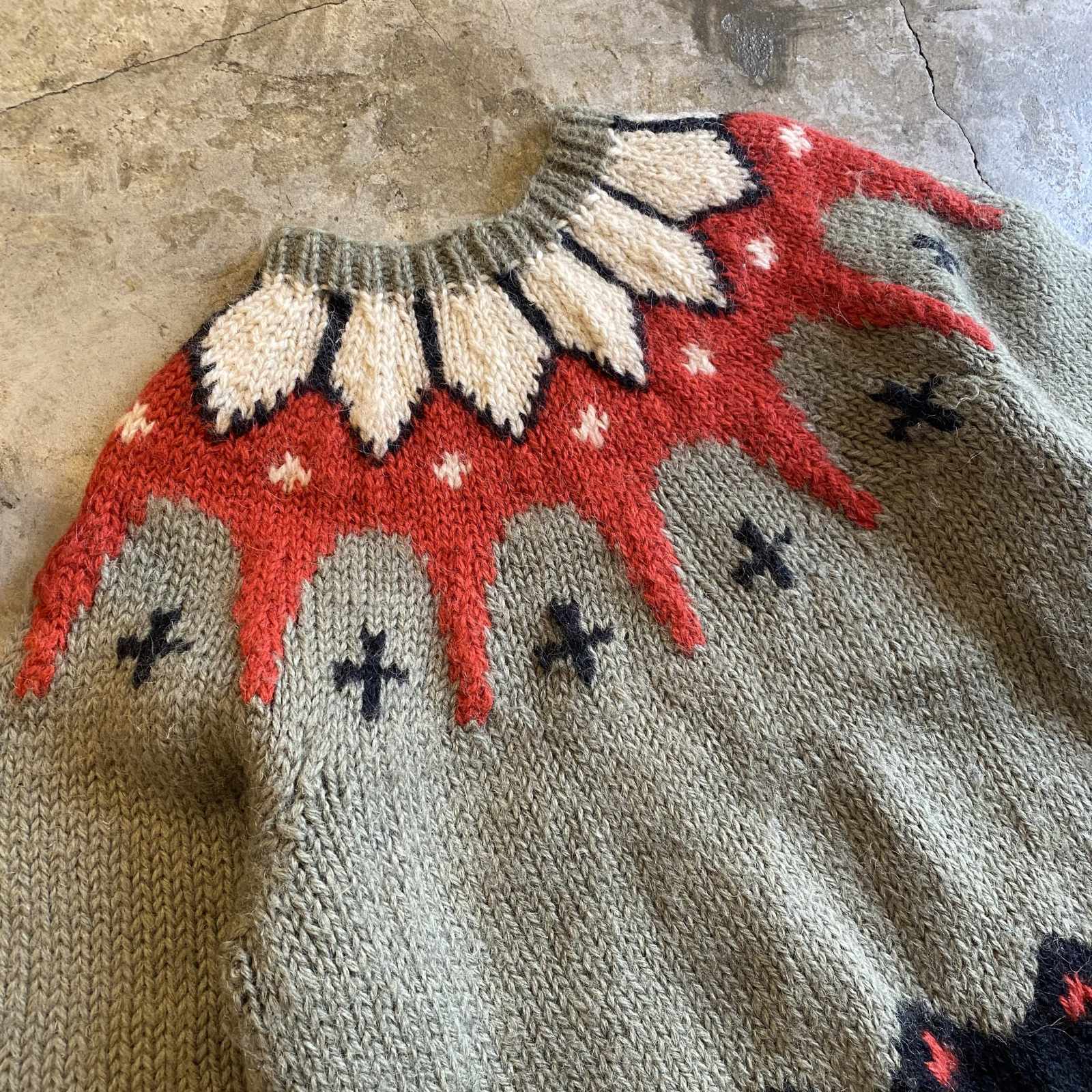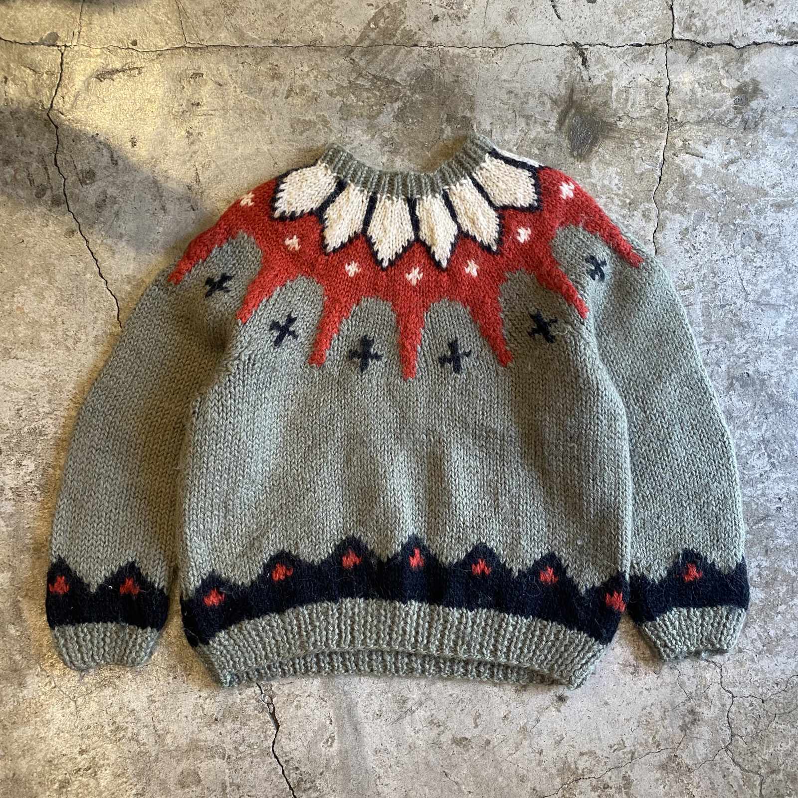 POINT PATTERN COLOR DESIGN HAND KNIT SWEATER / Ladies M