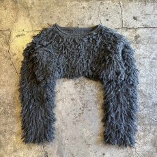LOOP FRINGE LONG SLEEVE DESIGN SHORT KNIT SWEATER / Ladies L
