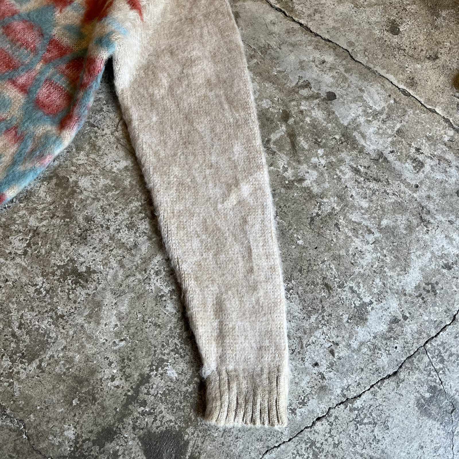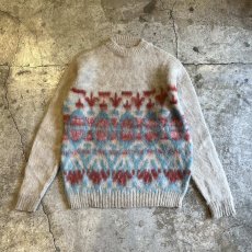 FRONT COLOR ART PATTERN WOOL MOHAIR MIX KNIT SWEATER / Ladies L