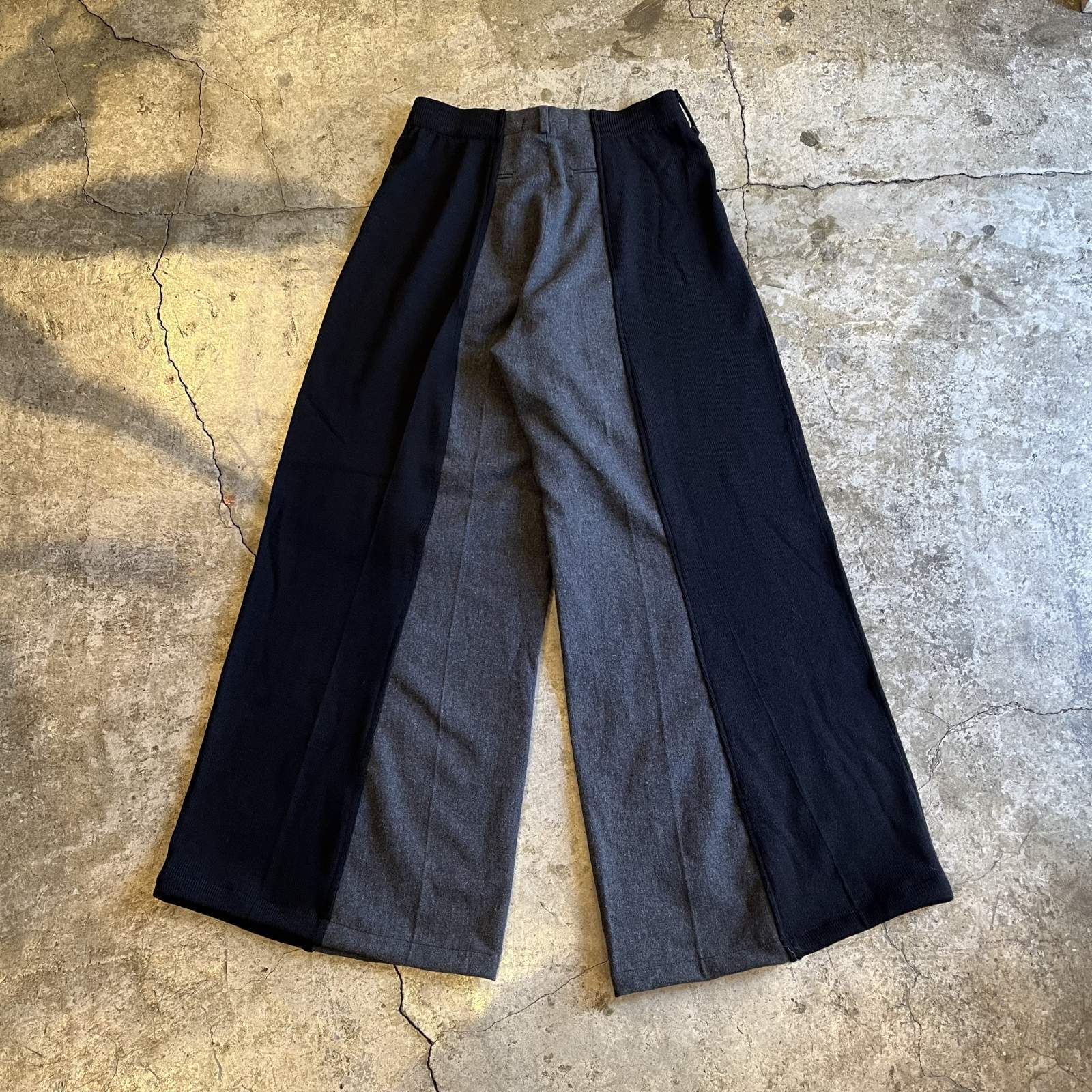 ウールのスラックスパンツとニットパンツをドッキングした1本。
