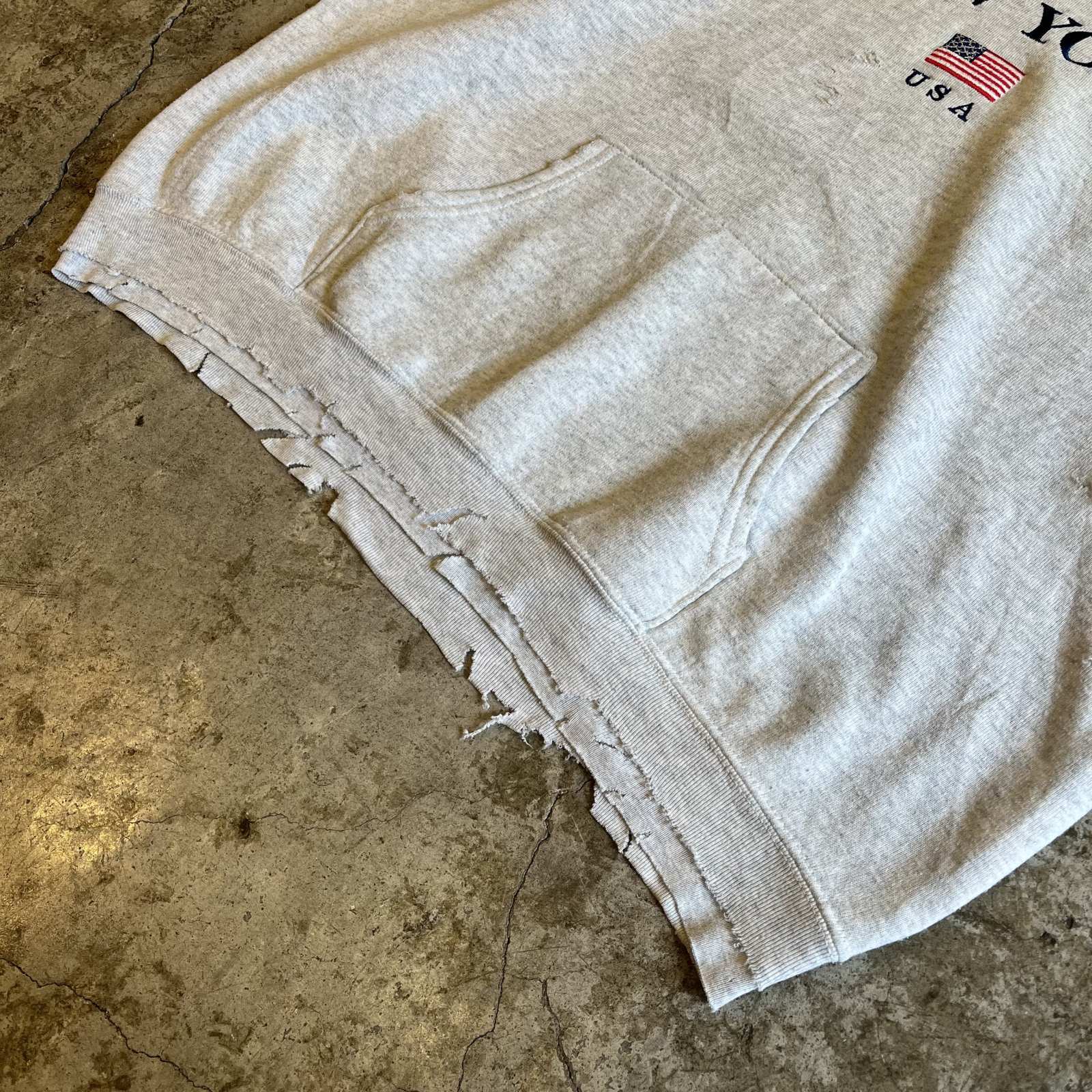 - > FRONT "NEW YORK USA" LOGO EMBROIDERY CRASH DAMAGE DESIGN SWEAT HOODIE / Ladies XL