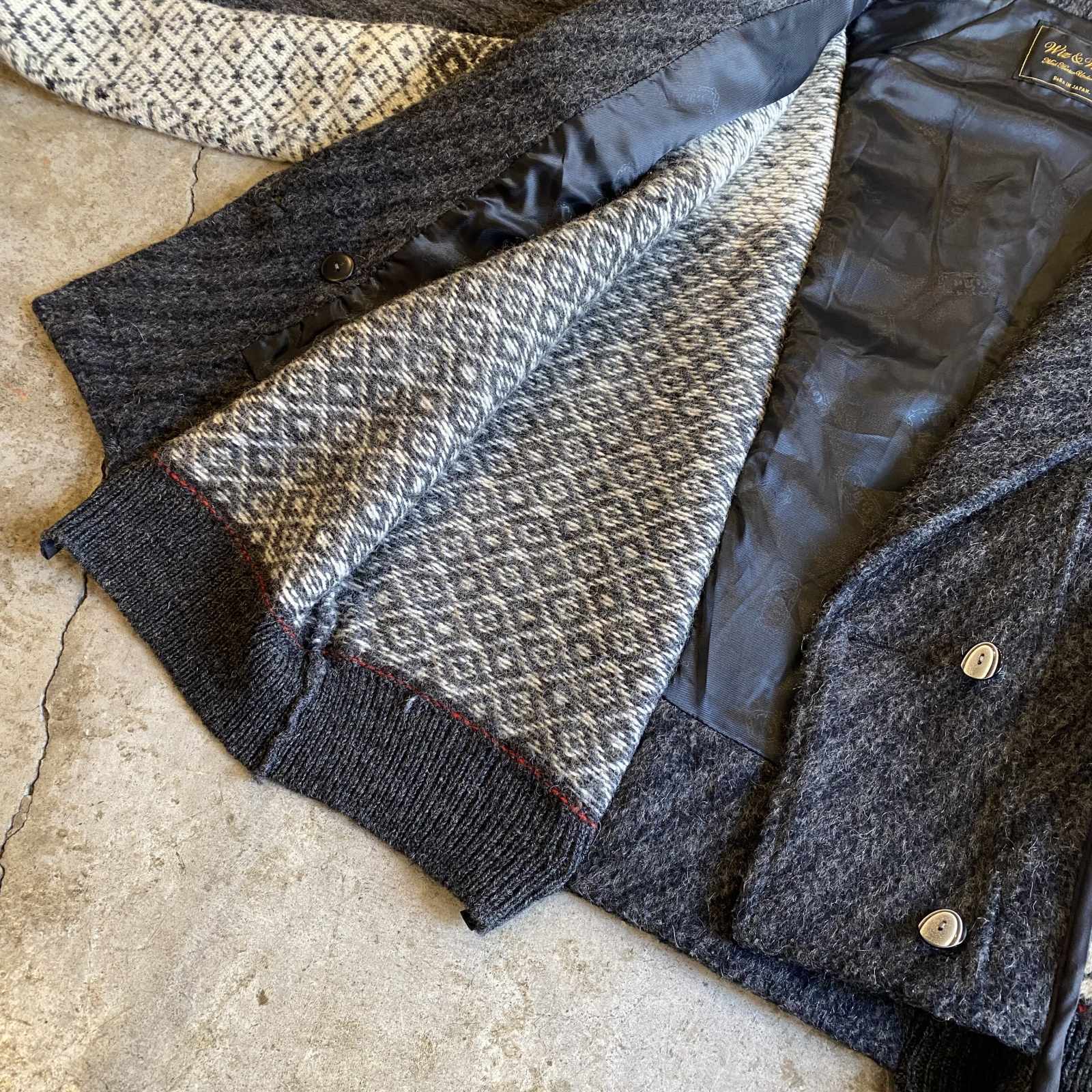 ノルディック模様のニットセーターとウールのジャケットをドッキングした1枚。