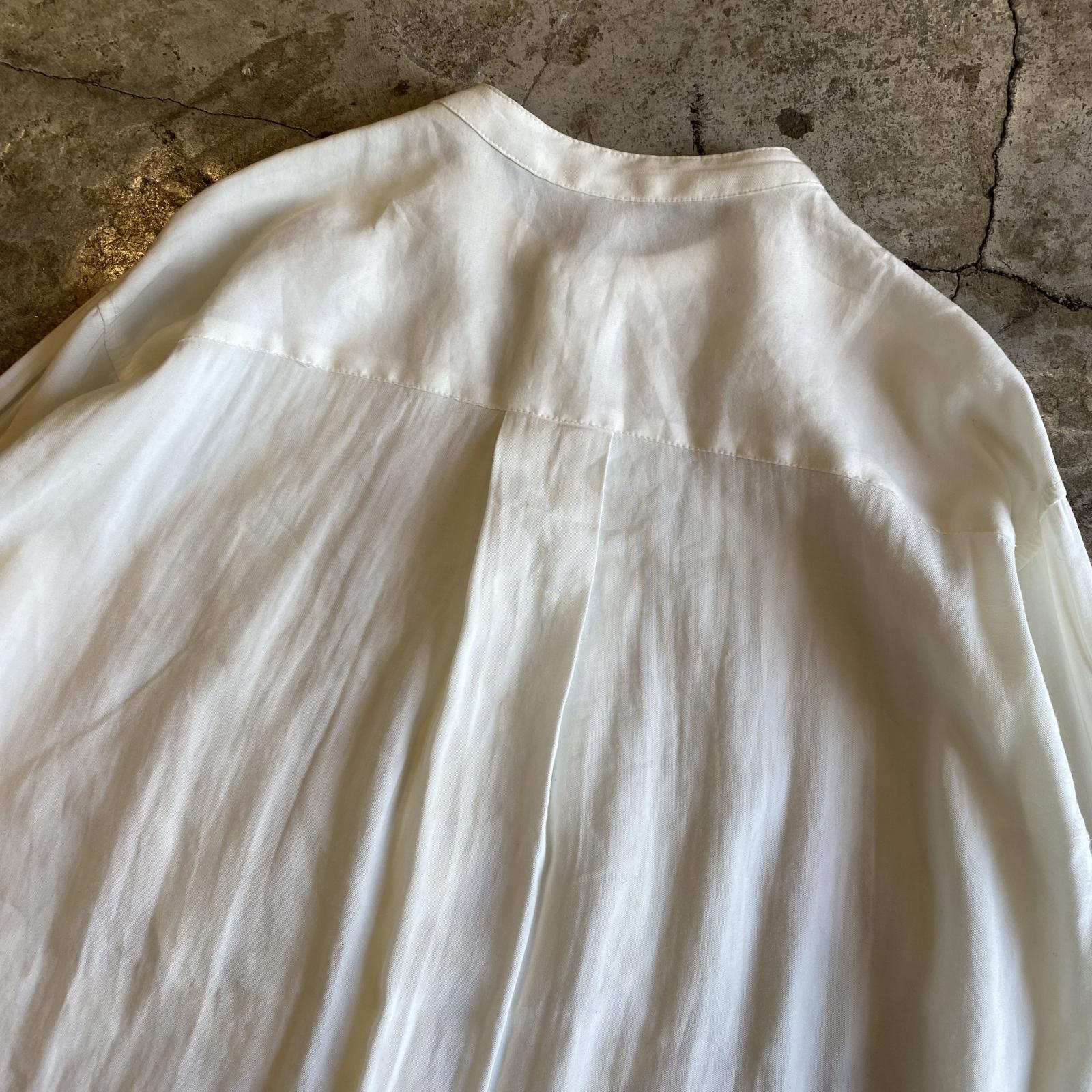 NO COLLAR PLEATS DRESS DESIGN L/S SHIRT / Ladies L