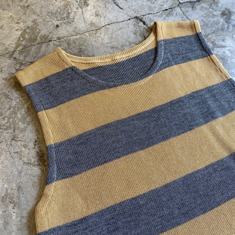 BORDER PATTERN SIDE SLIT 2BELT DESIGN VEST / Ladies M