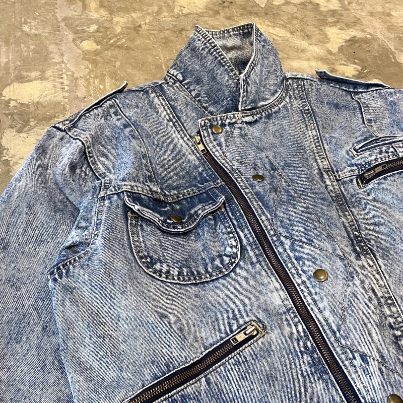 FRONT FLAP MULTI POCKET HI-NECK DENIM JACKET / Mens XL