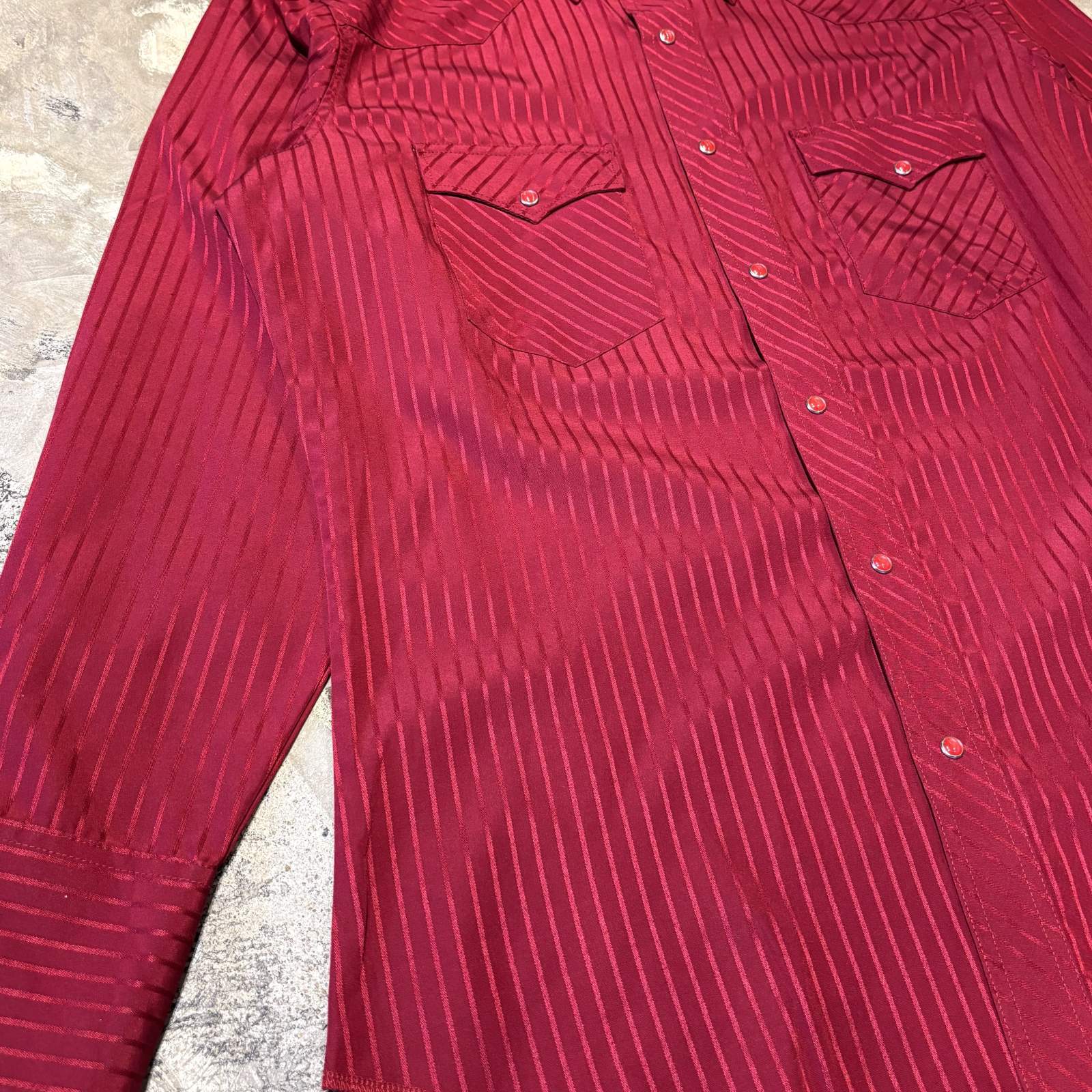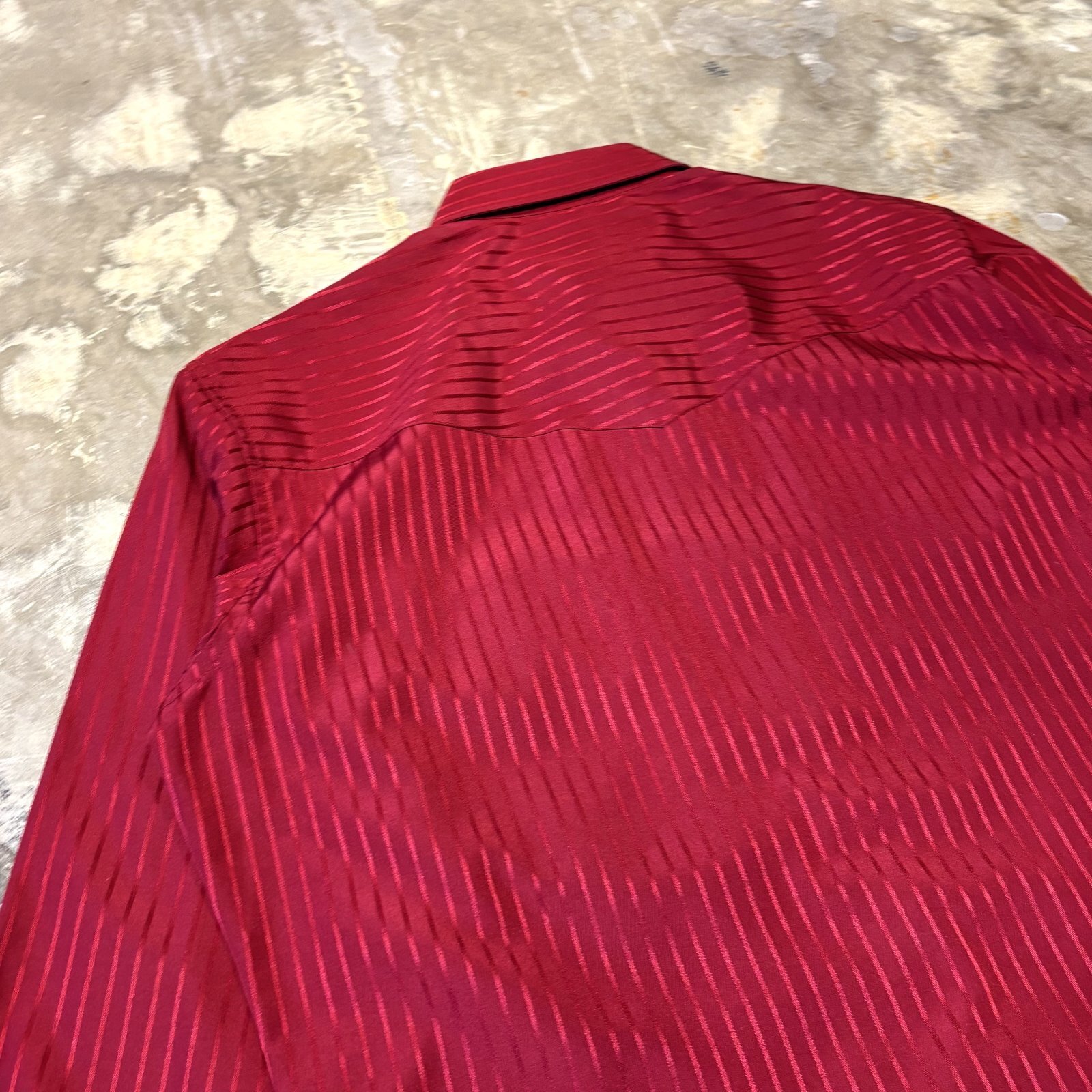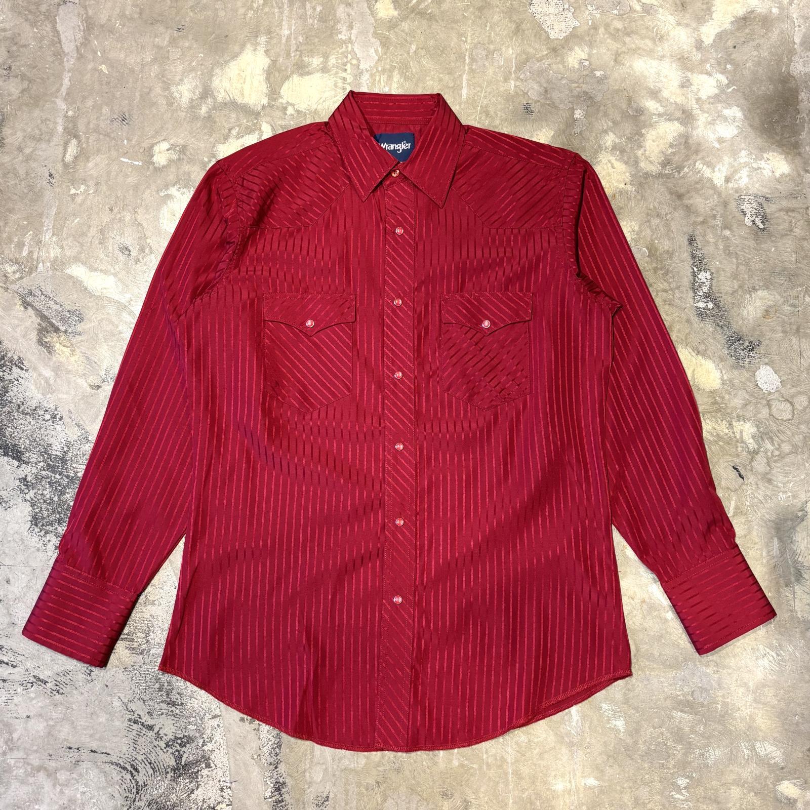 全体がレッドに統一された、"WRANGLER"のデザイン長袖ウエスタンシャツ。