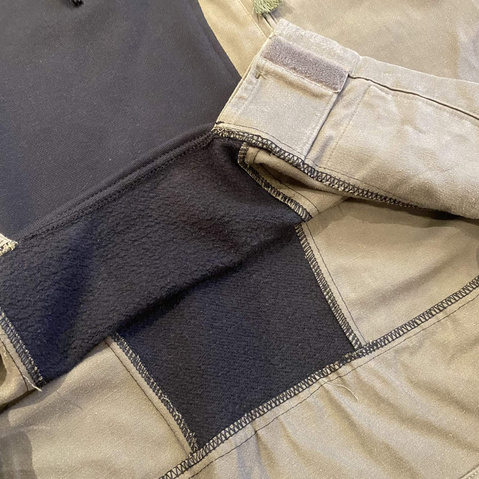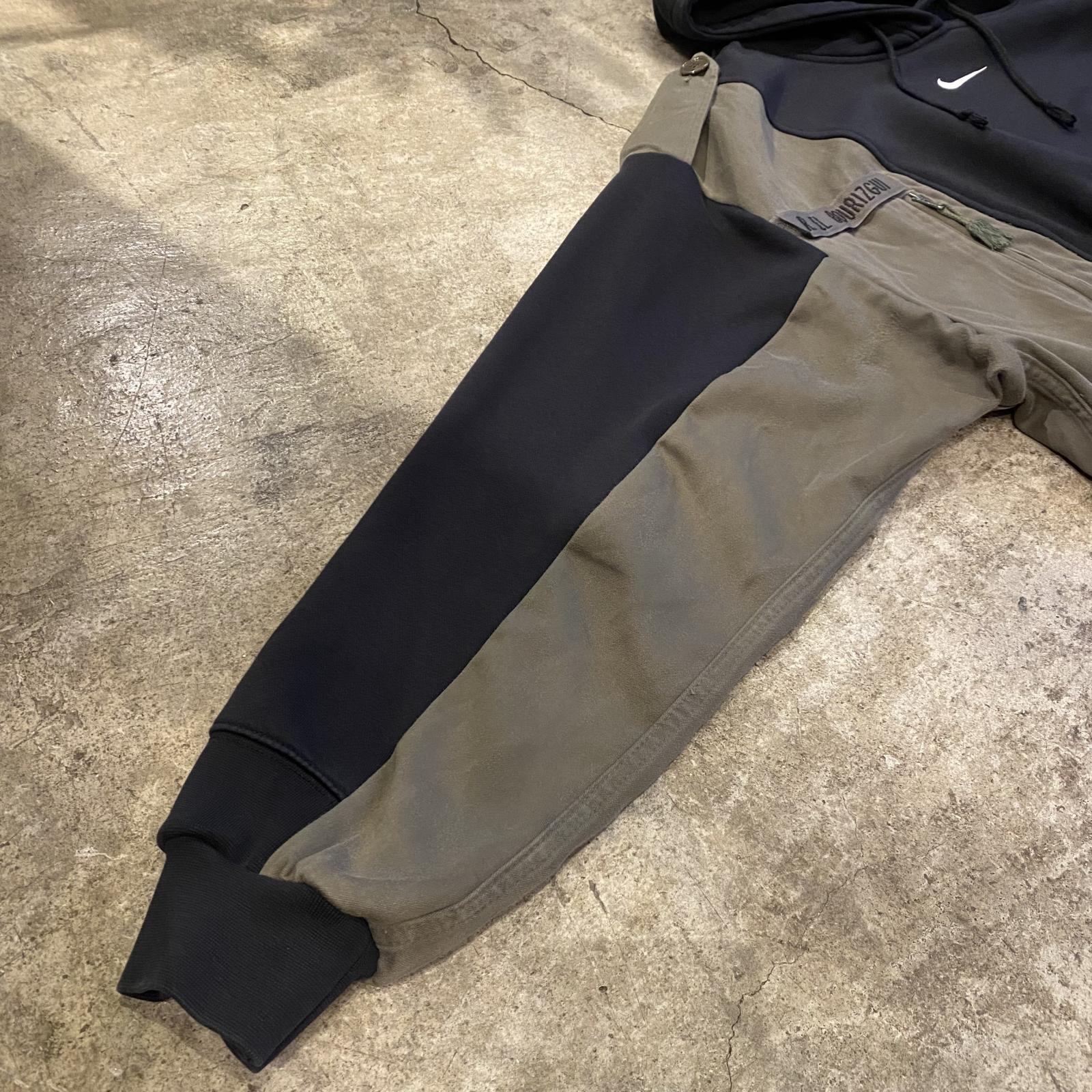 スポーツブランドのNIKEのスウェットにミリタリージャケットをドッキング。