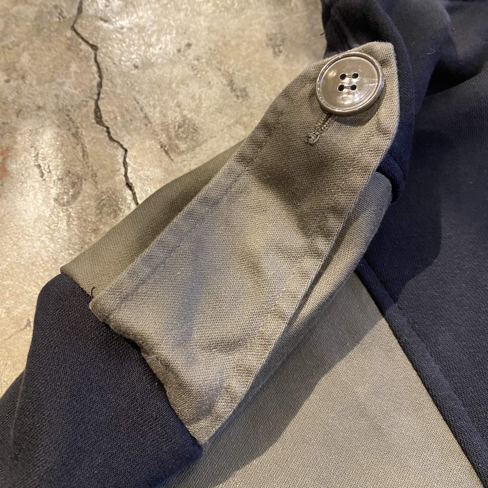 デザイナーのインスピレーションにより解体・再構築された"WANDERER" OLD MILITARY DOUBLE SHOULDER JACKET。 ヴィンテージミリタリージャケットがショート丈へと…
