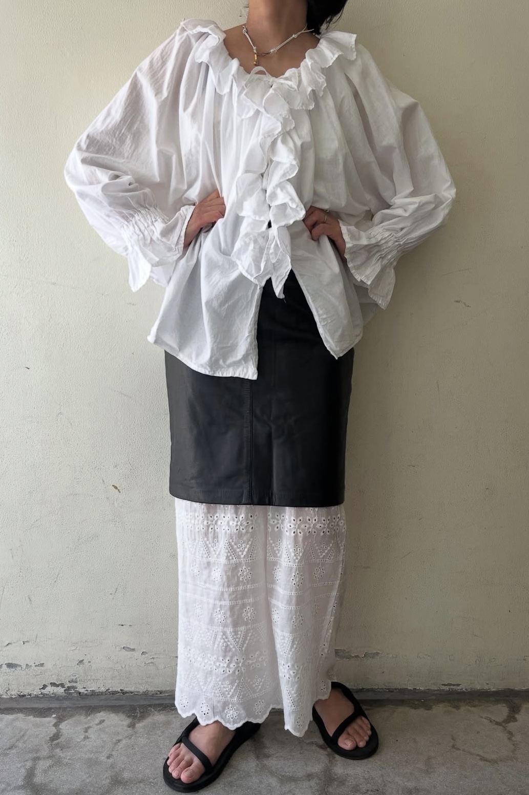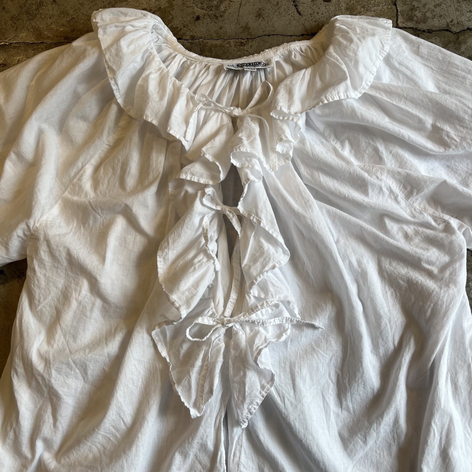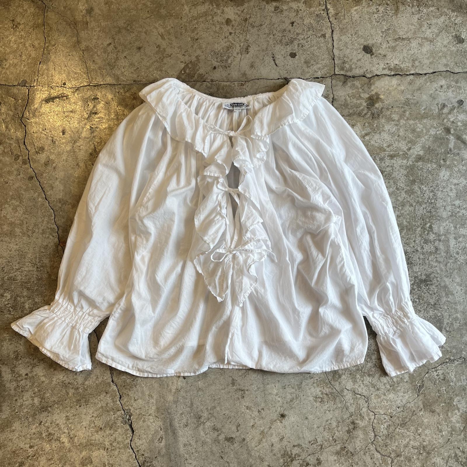 OLD FRONT RIBBON FRILL DESIGN L/S BLOUSE / Ladies L(ONE SIZE) / MADE IN USA