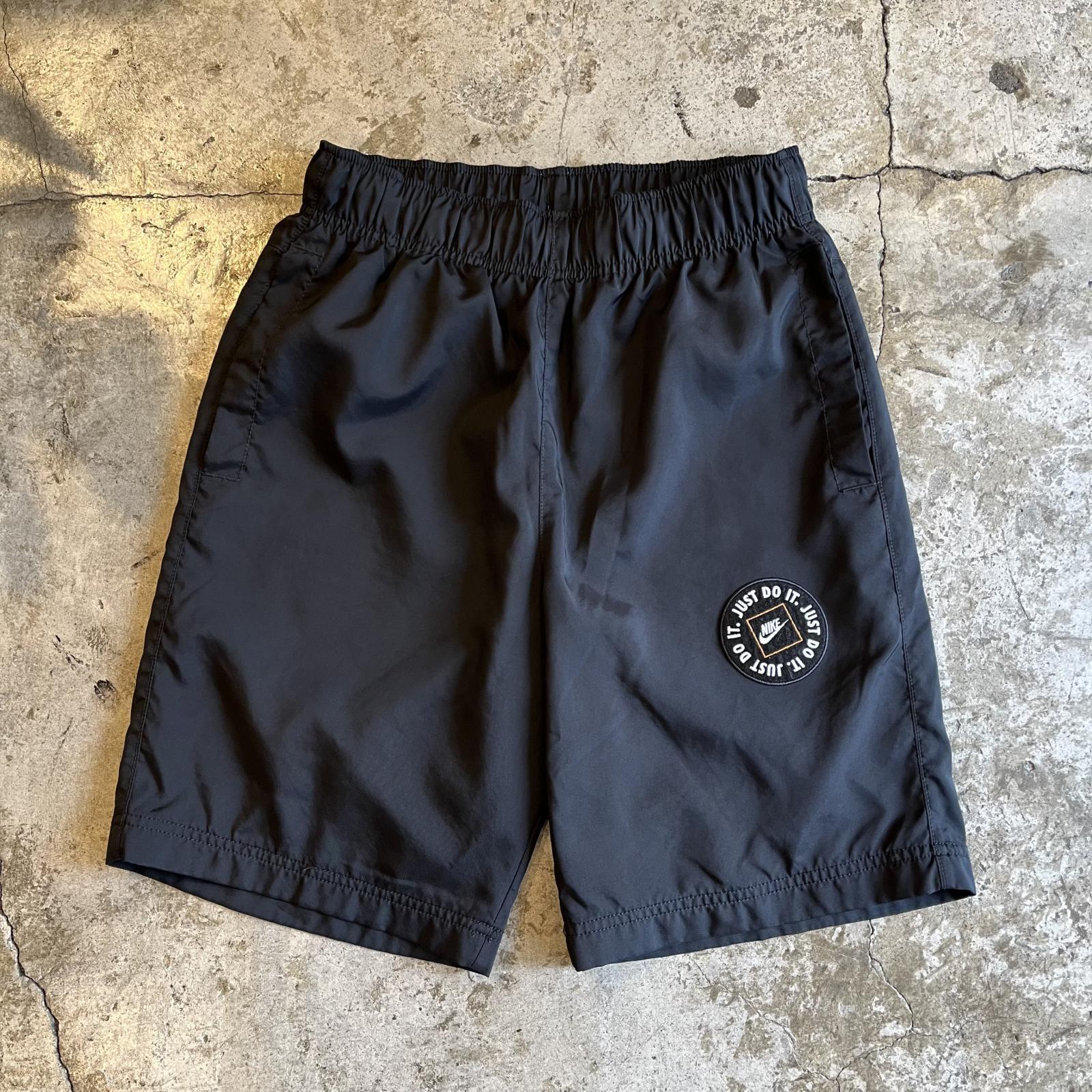 【NIKE】BLACK COLOR PATCH EMBROIDERY DESIGN NYLON HALF PANTS / FREE~W31(S)