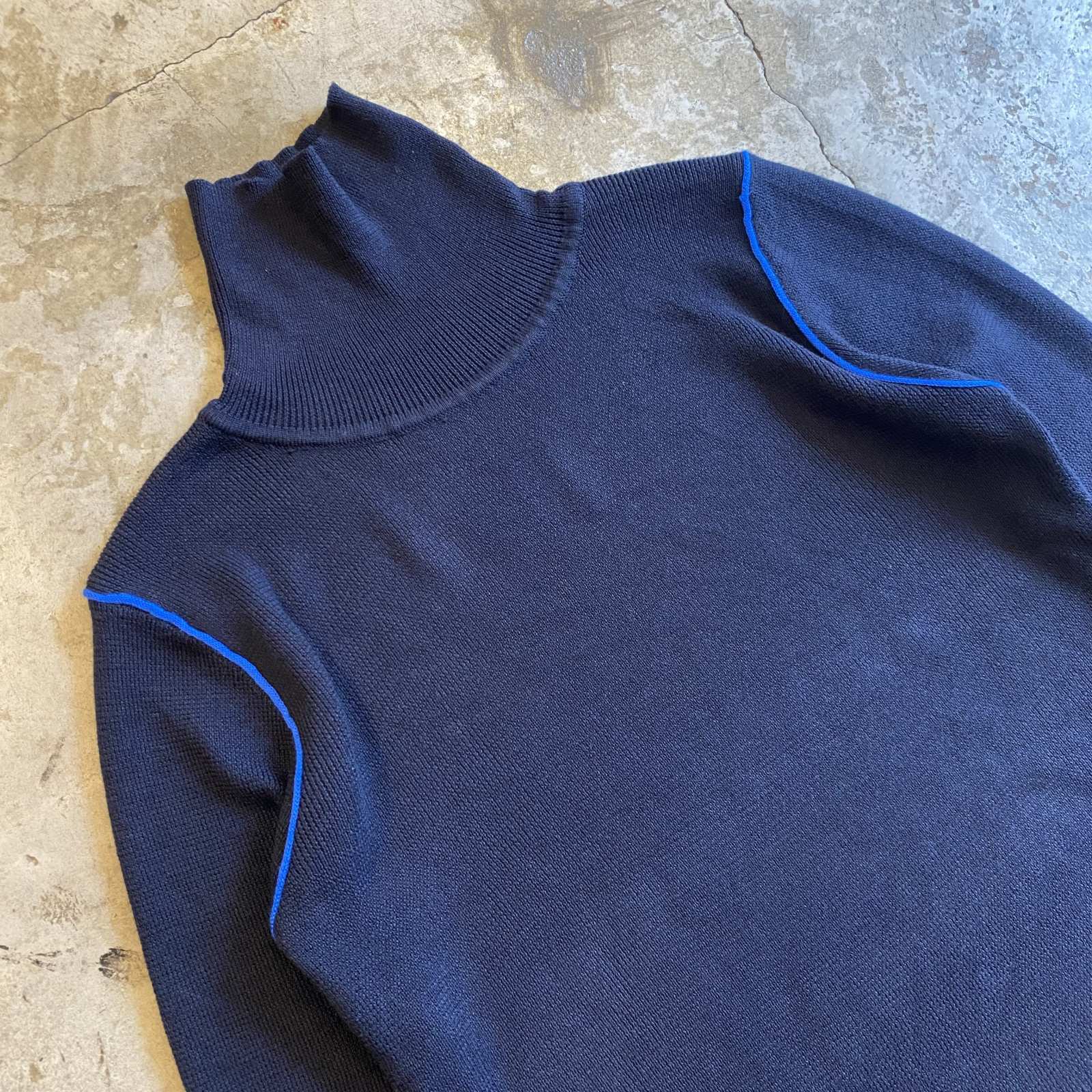 ブルーのワンポイントが映えるタートルデザインのトップス。