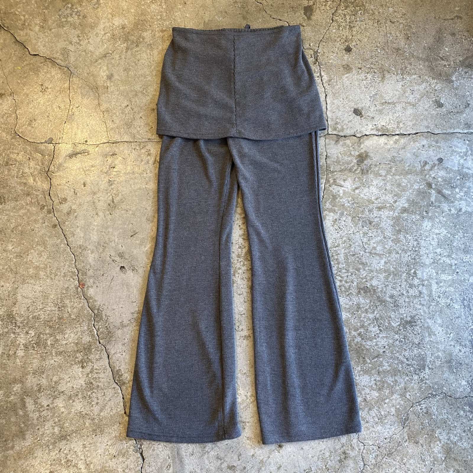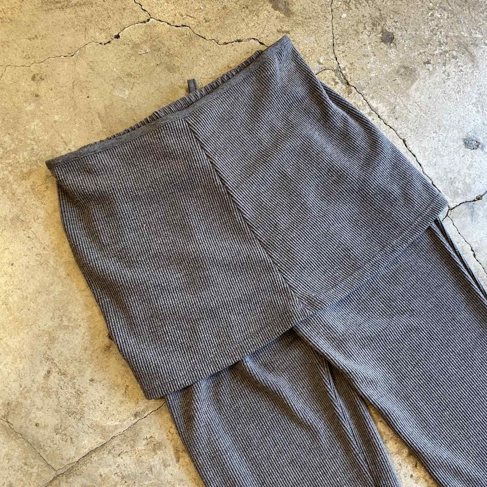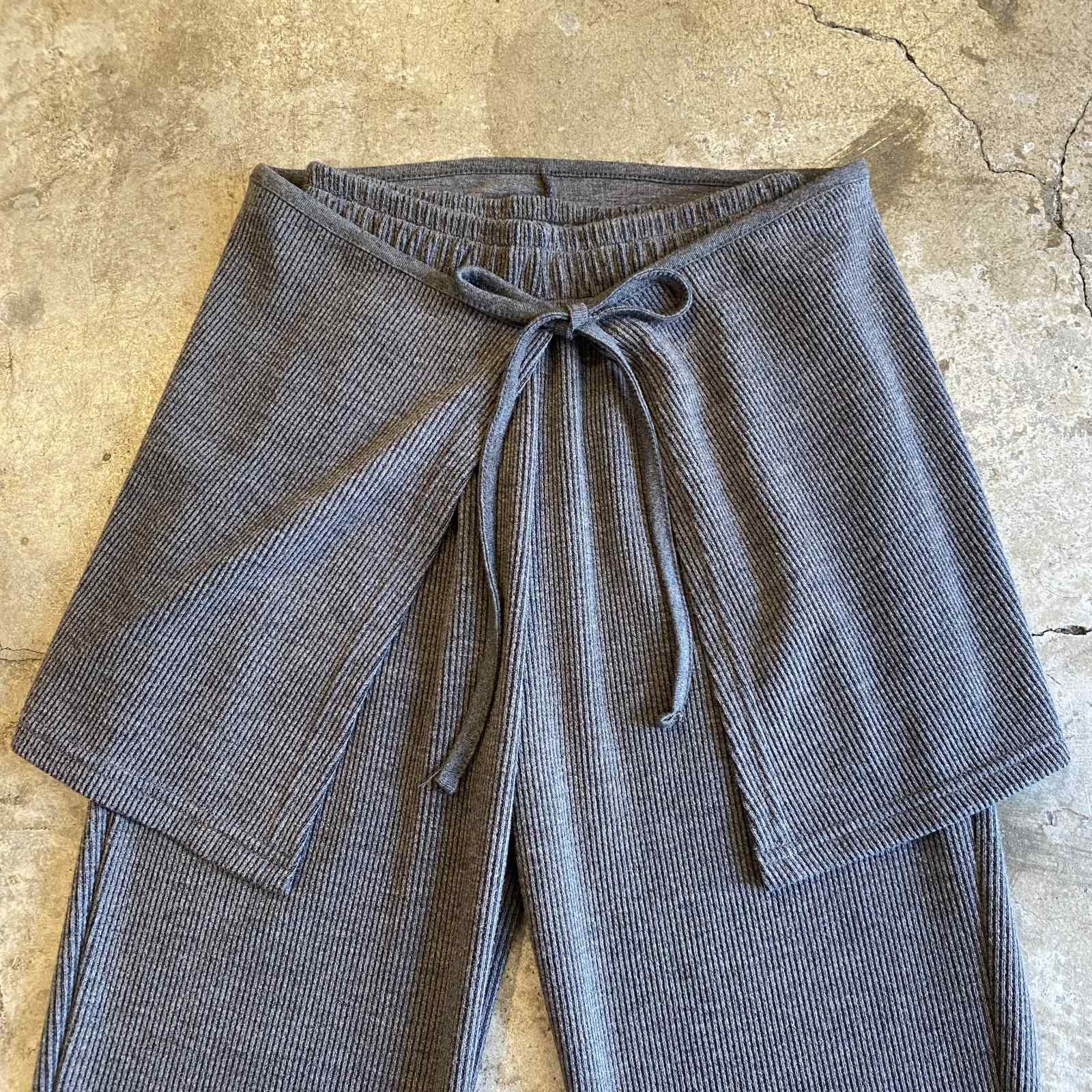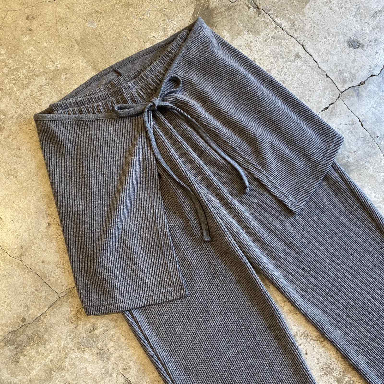 - > 【WONDERGROUND】RIB KNIT LAYERED WRAP PANTS / CHARCOAL / OS