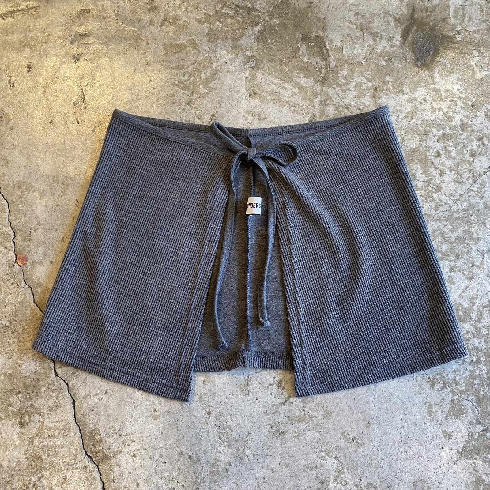 【WONDERGROUND】RIB KNIT LAYERED WRAP PANTS / CHARCOAL / OS