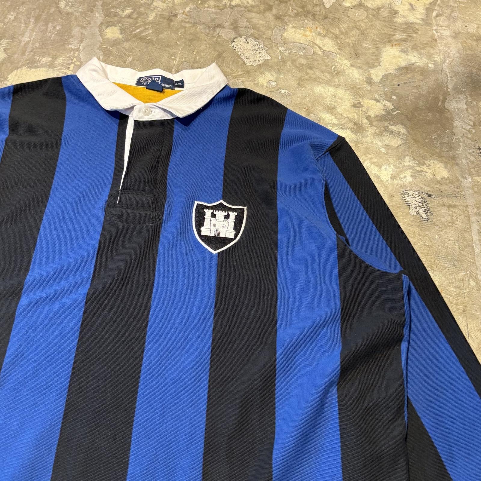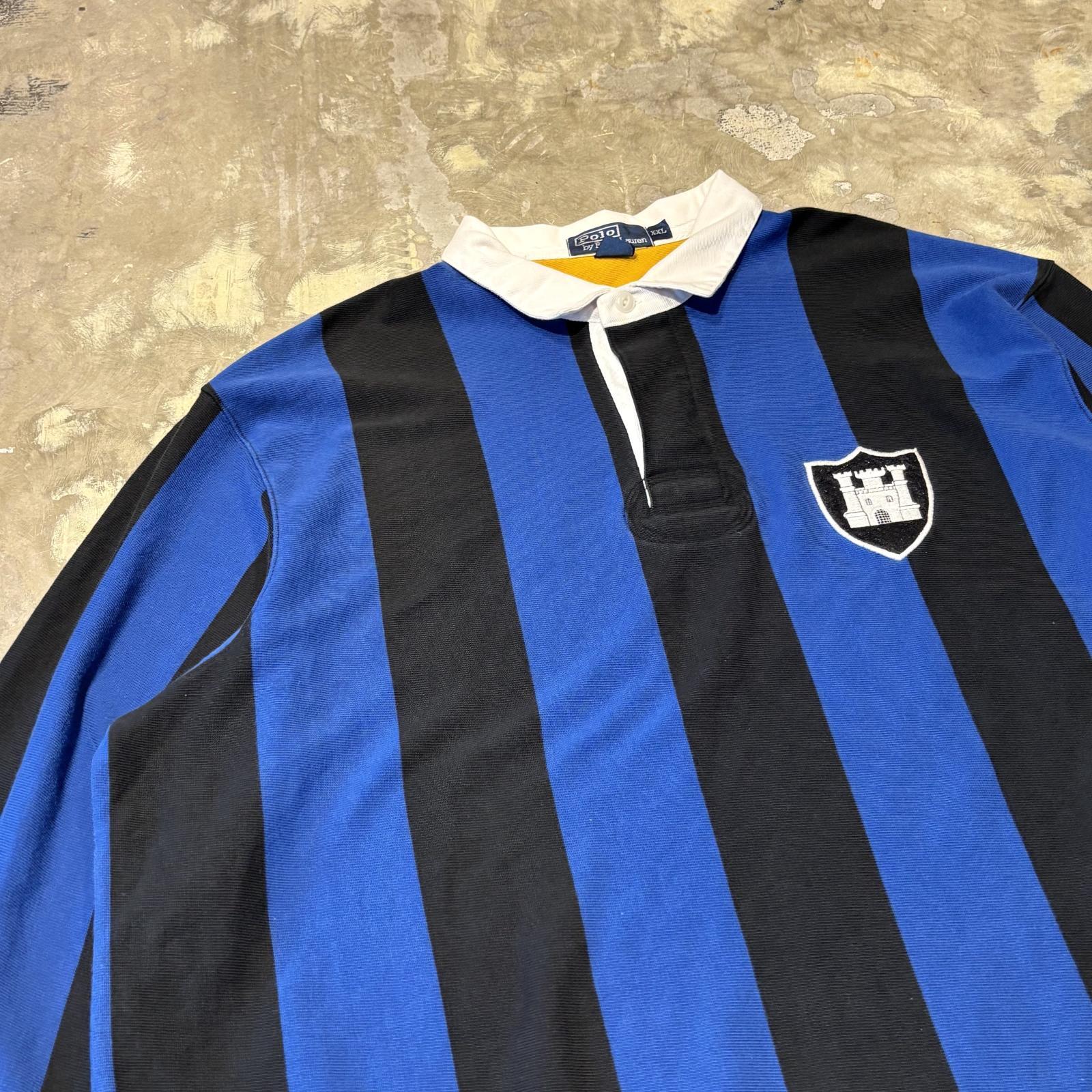 【POLO RALPH LAUREN】STROPE PATTERN HALF BUTTON L/S SHIRT / Mens XXL