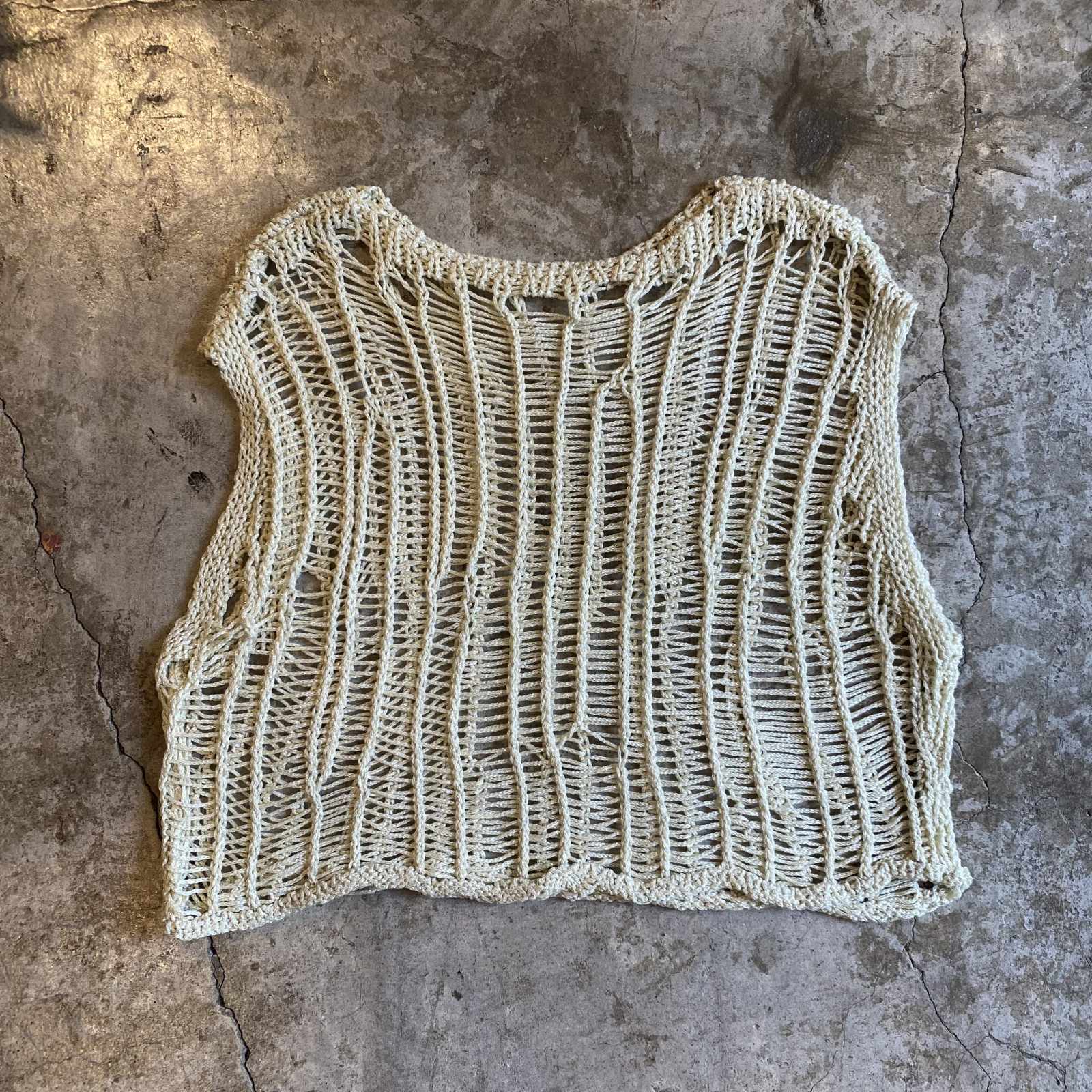 IVORY COLOR GLITTER DESIGN CROCHET VEST / Ladies M