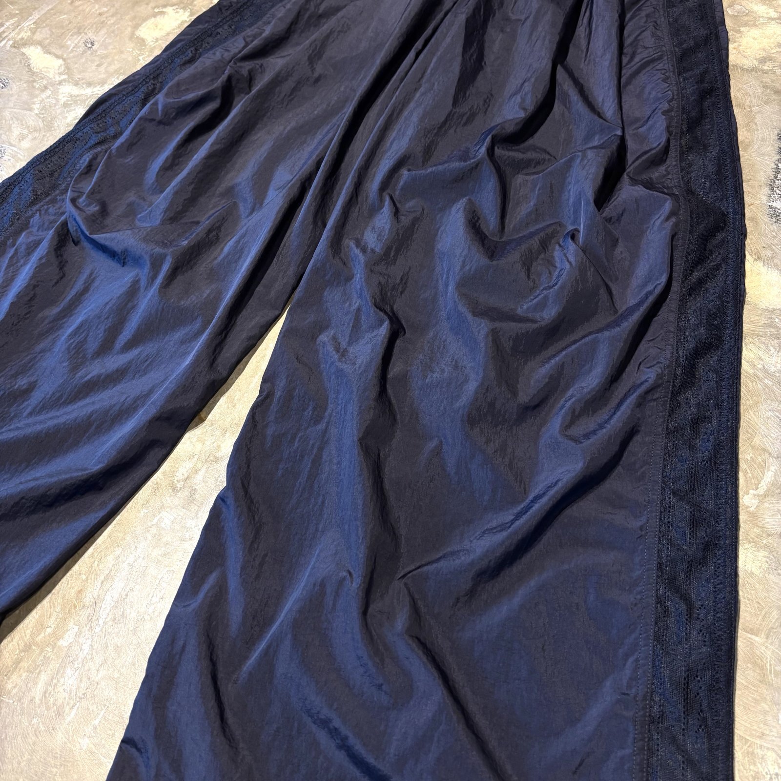 SIDE LACE UP LINE WIDE SILHOUETTE NYLON PANTS / W30~