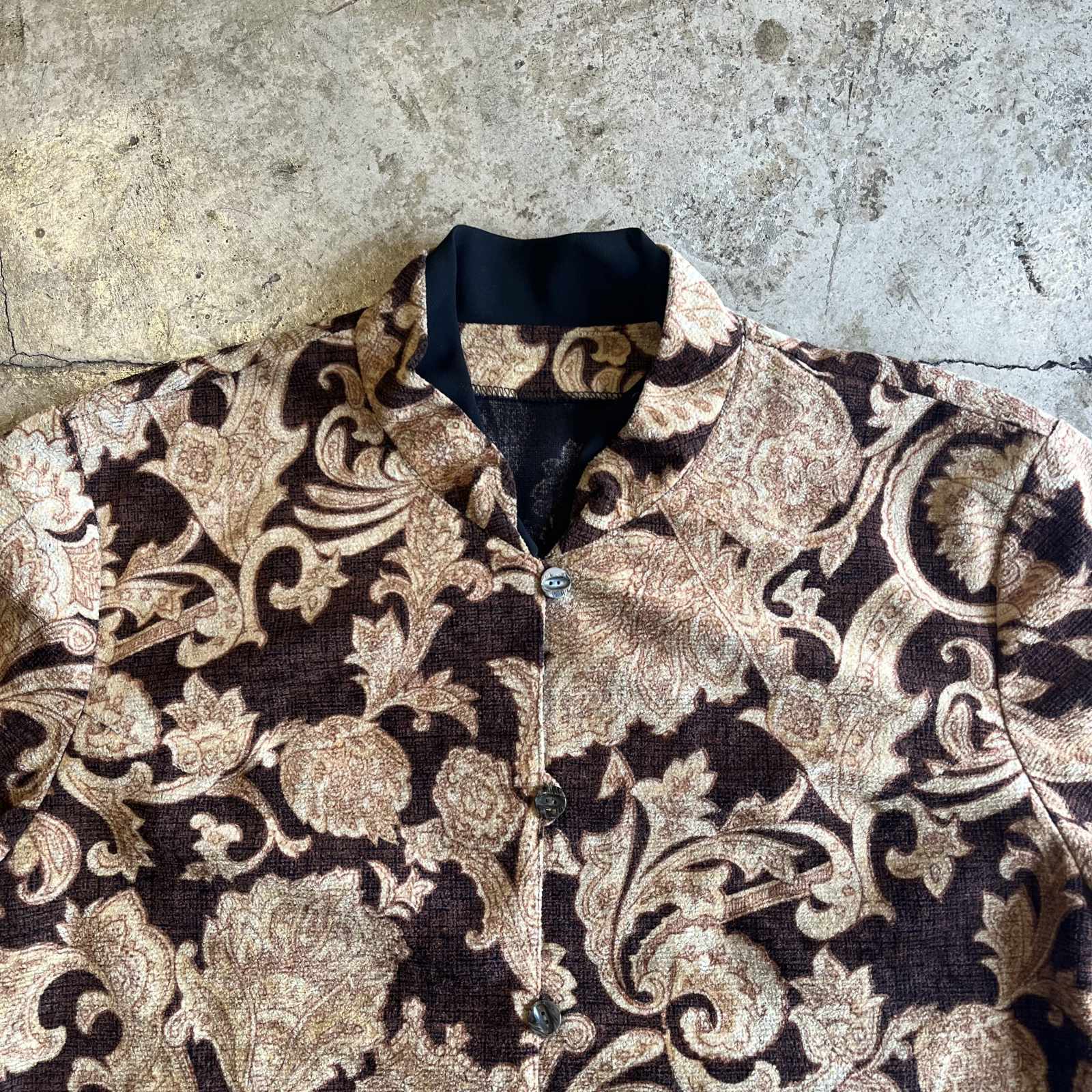 - > ALL OVER ART PATTERN SHORT DESIGN VELVET STAND COLLAR JACKET / Ladies M