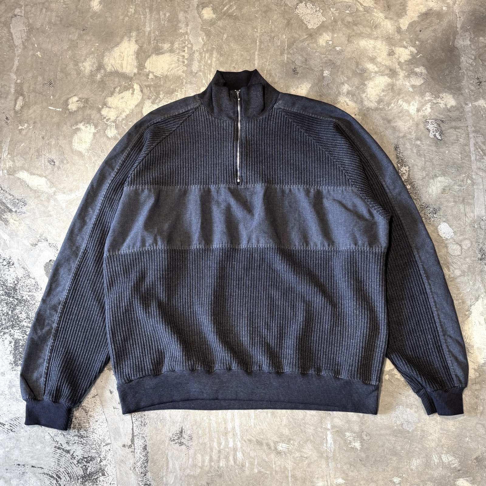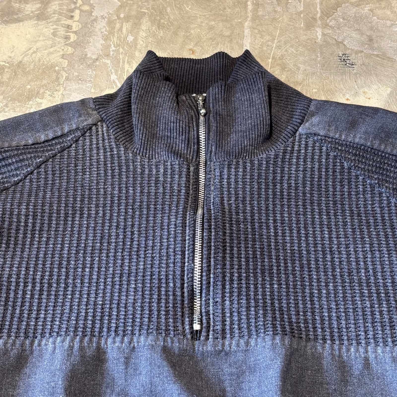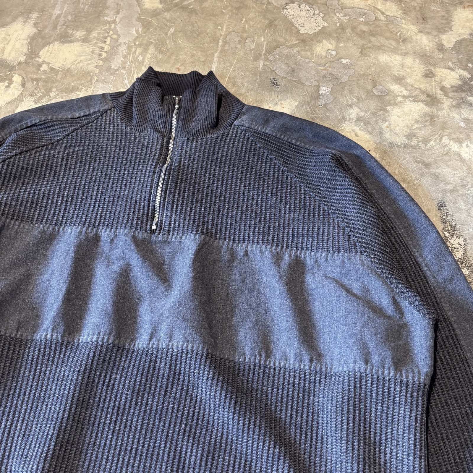 MATERIAL SWITCHED HALF ZIP KNIT SWEATER / Mens XL
