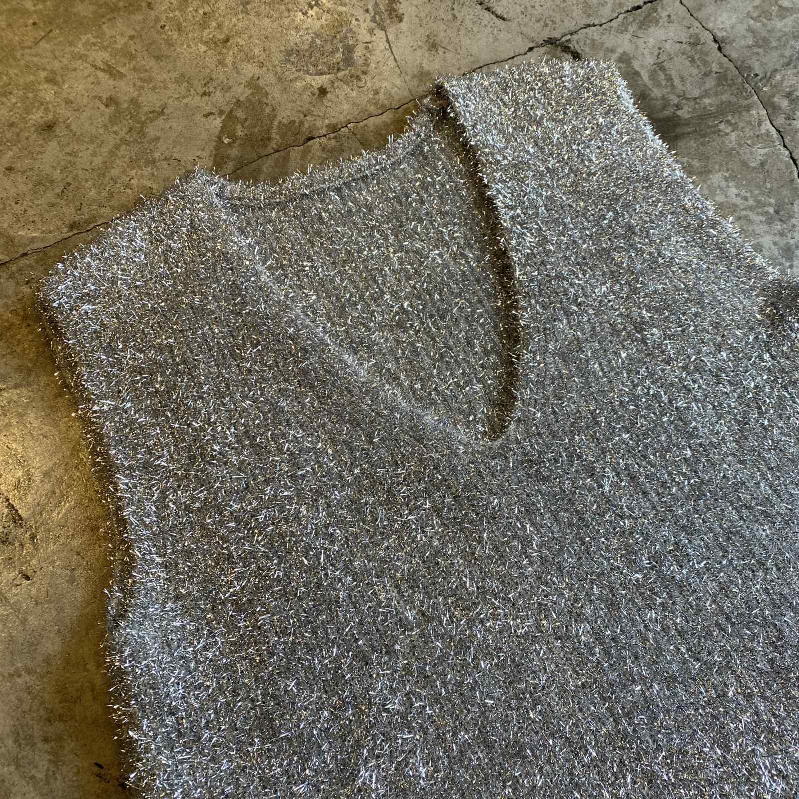 METALLIC SILVER COLOR SHAGGY DESIGN VEST / Ladies M