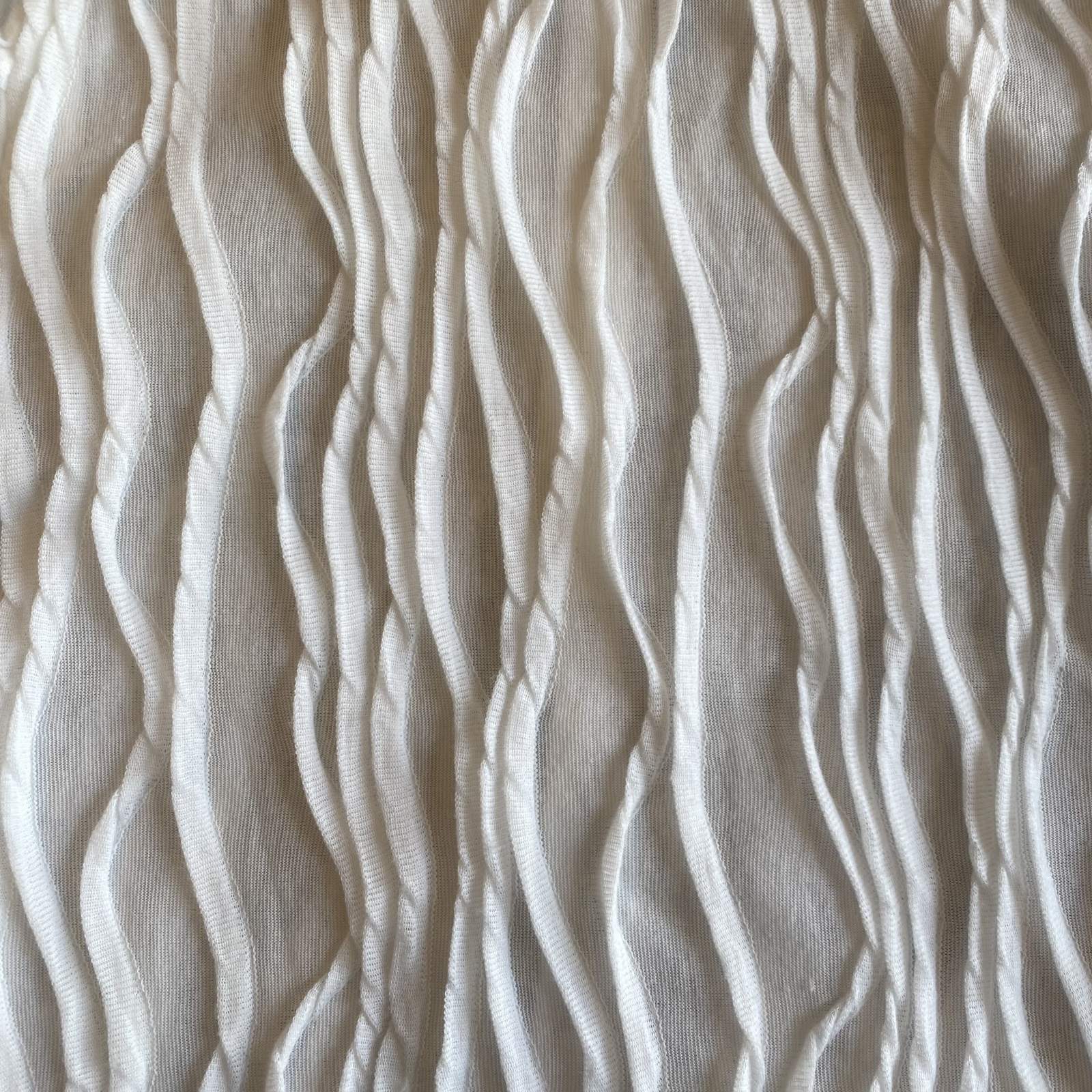 凹凸のアート模様が目を惹くデザインポロトップス。 ナチュラルなアイボリーカラーで柔らかな雰囲気を醸し出した1枚。 ボリュームスリーブがポイントになり、抜け感、こなれ感を演出。 シックなワントーン…