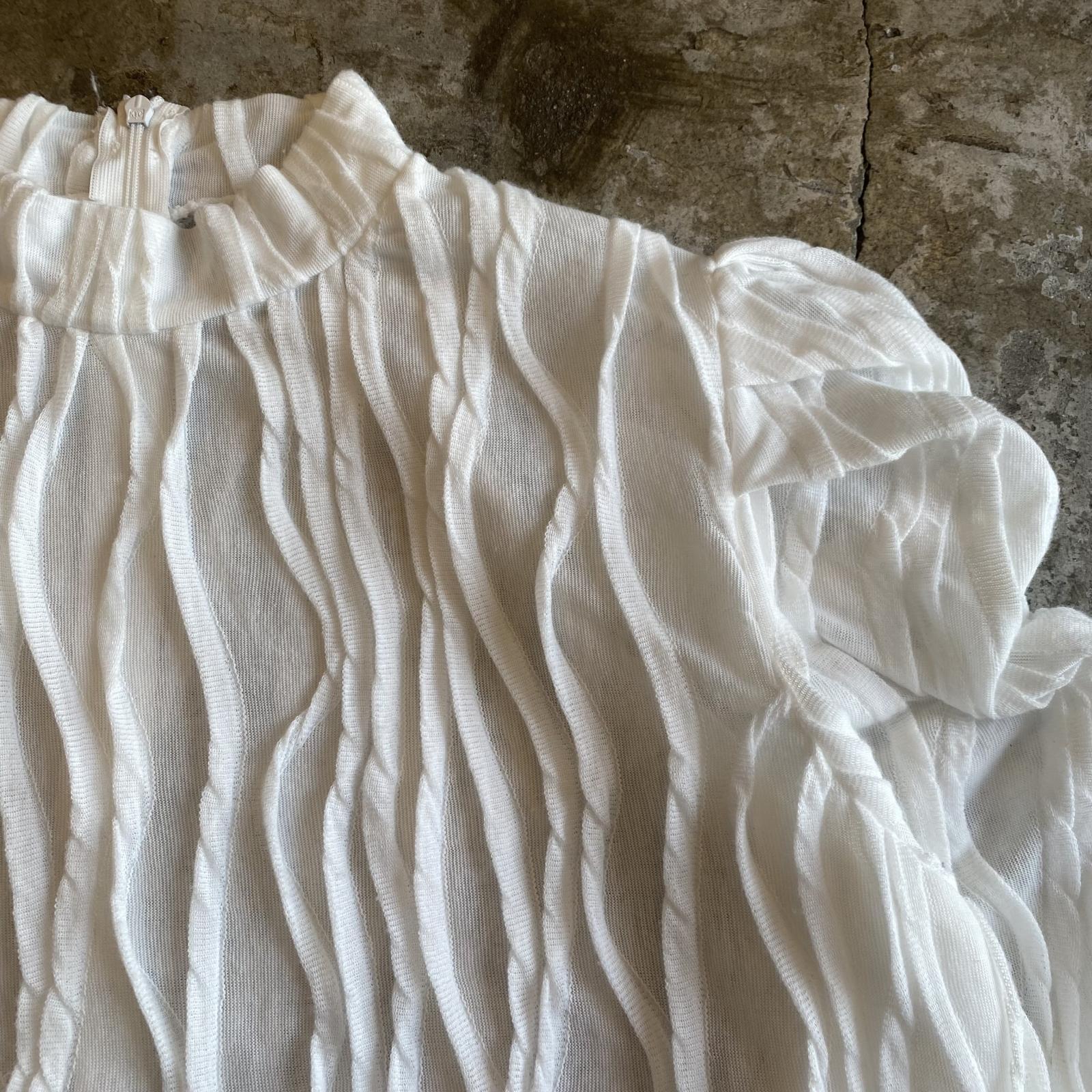 デザイン性のあるポロトップス。 立体的な模様が目を惹く1枚。 ナチュラルなホワイトカラーで柔らかな雰囲気を醸し出し、 ボリュームスリーブが雰囲気を演出。 シックなワントーンでコーディネートしや…